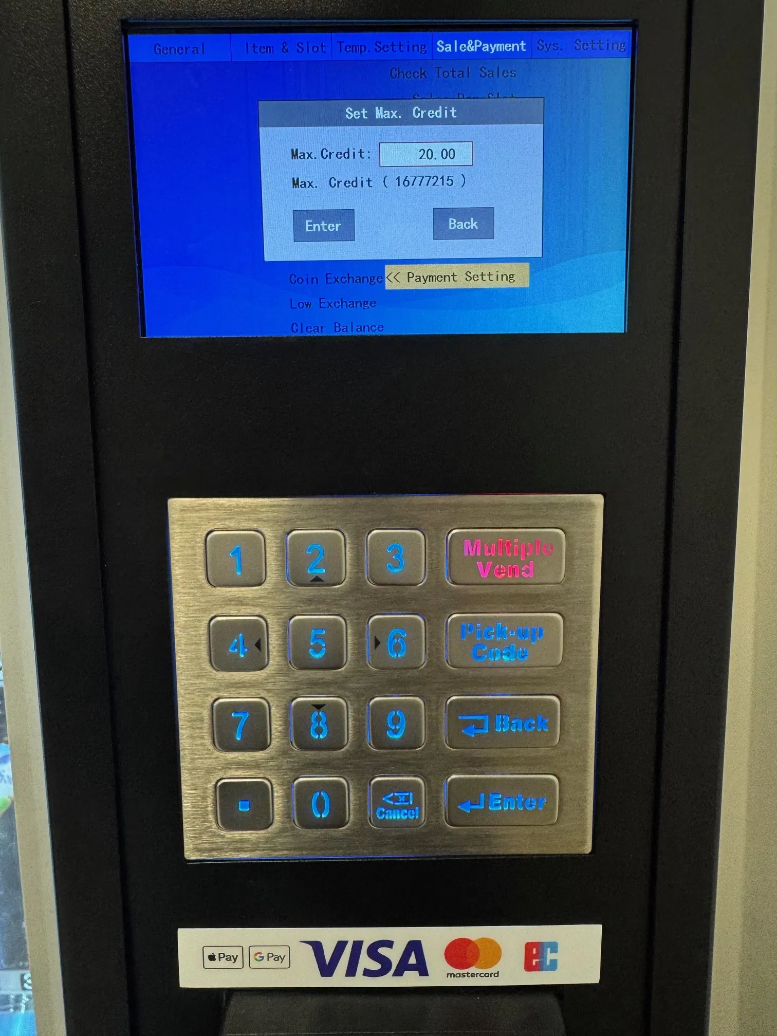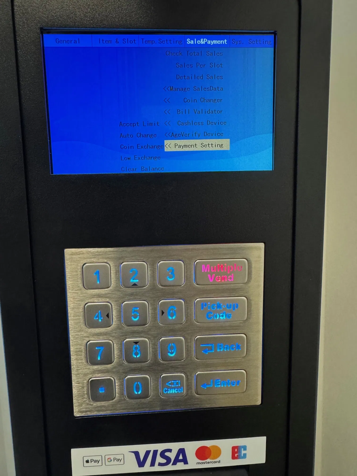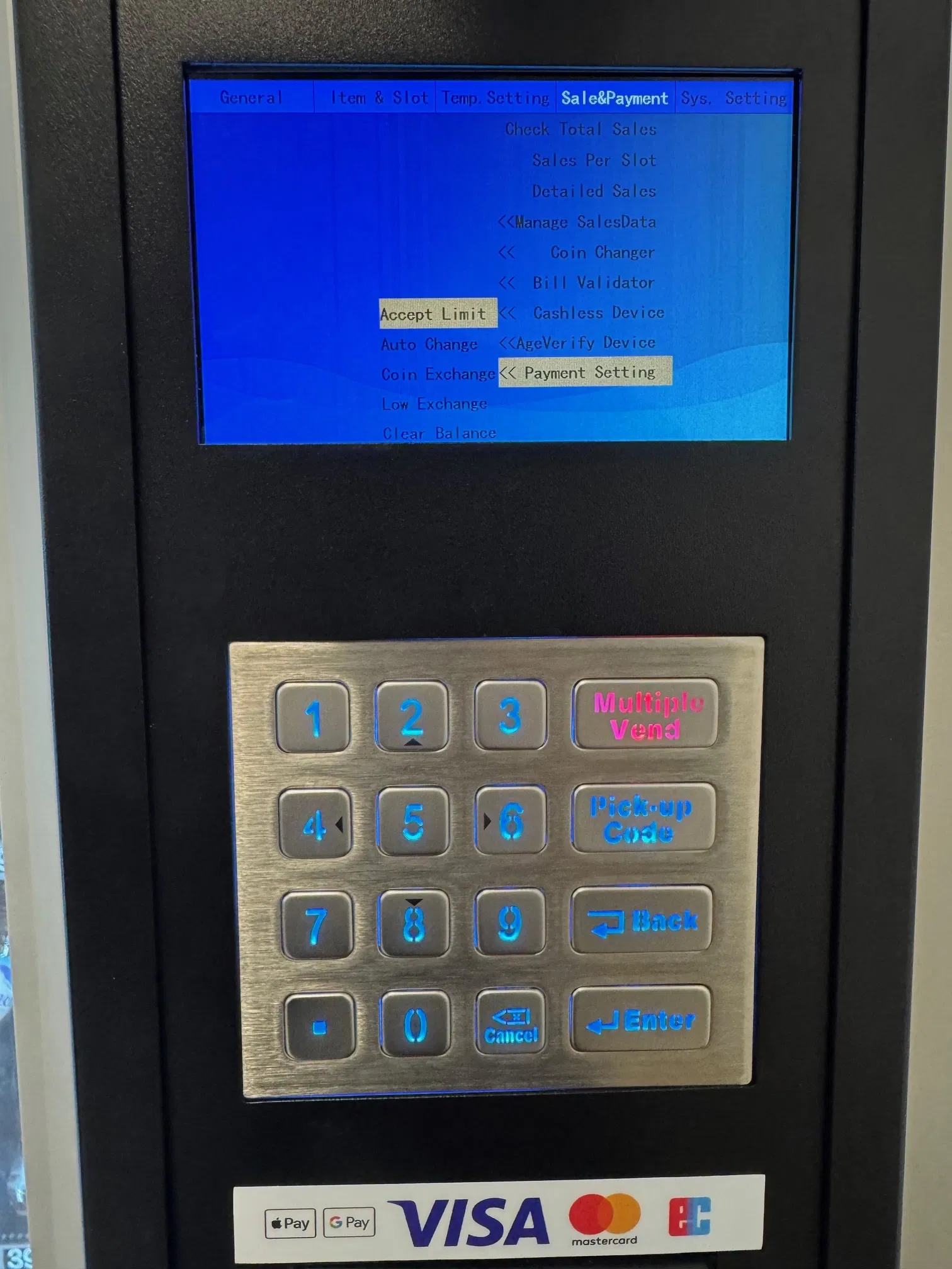 Zahlungseinstellungen am 5 Zoll Automaten vornehmen.